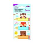 12 étiquettes adhésives scolaires - Rectangle - Animaux sur crayons - Paillettes