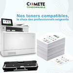 Les produits de la marque française COMETE CONSOMMABLE vous offrent une compatibilité 100 % garantie. Nos cartouches d’encre, Toners et rubans compatibles sont économiques et de haute qualité. Nous avons à cœur de choisir des partenaires français, dont certains modèles sont fabriqués en France, contribuant ainsi à la relocalisation de la production dans le pays. Nos cartouches d’encre, toners ou rubans se substituent parfaitement aux consommables d'origine de votre imprimante, télécopieur ou photocopieur, quelque que soit la marque HP, CANON, EPSON, BROTHER, LEXMARK, SAMSUNG. Que votre utilisation soit personnelle ou professionnelle, à domicile, en télétravail ou au bureau, ou encore dans le milieu de l’enseignement, vous bénéficiez d'une encre d'une qualité équivalente à celle des produits de grande marque, tout en réduisant leur coût d'achat. Selon les modèles de cartouche, vous pourrez réaliser des économies jusqu'à 50 % du prix des consommables d'origine ! De plus, en cas de problème, l'utilisation de nos cartouches et toners ne remet pas en cause la garantie fabricant de l'appareil avec lequel vous les employez et vous bénéficiez d’un service Clients accessibles directement et facilement par téléphone ou par mail. Nos conseillers spécialisés sont basés en France et répondent à vos questions et demandes avec sérieux Fiers de nous engager pour la protection de l'environnement, nous vous proposons des cartouches recyclées et des enveloppes de retour pour recycler vos cartouches usagées. Et pour garantir une livraison rapide, nous choisissons des transporteurs fiables et nous gardons un large choix de références en stock !