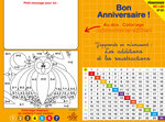 67-1102-B Carte Pédagogique Bon Anniversaire Coloriage Magique Jeu avec Crayon de couleur aléatoire et Enveloppe Jaune J'apprends en m'amusant Additions Soustractions pour Enfants CP CE1 dès 5 6 7 ans