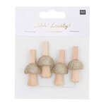 8 pinces clip en bois champignons dorés