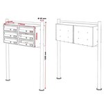 Dimensions par compartiment: 360 x 270 x 100mm Dimensions fente à lettres: 325 x 30mm Dimensions de la boite aux lettres: 354 x 770 x 270mm Dimensions du support : 1200 x Ø 49mm / 85mm Poids en kg 12,2 Matériau Acier galvanisé Couleur Anthracite Épaisseur du matériau (en mm) 0,6 Application / Information / Caractéristiques Large fente de boite aux lettres 6 Boite aux lettres avec porte-nom 2 clés par compartiment Avec un pied de support pratique Revêtement par poudre robuste Boite aux lettres au montage simple Accessoires 2x boîte aux lettres 6x 2 clés 1x support 1x matériel de montage