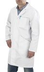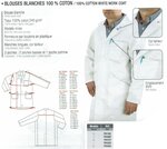 Blouse blanche 100% coton - Taille XL, Blouse blanche, Tissu 100% coton 240g/m², Modèle mixte, Fermeture par boutons en plastique, Manches longues, col tailleur, 3 poches : 2 poches basses et 1 poche poitrine