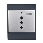 Elle est fabriquée en acier galvanisé et en acier inoxydable 304. Ayant une large ouverture pour vos lettres, elle est équipée d’une serrure et vous sera livrée avec deux clés. Le matériel de fixage est également inclus dans la livraison. Par surcroît, il y a un porte-journaux à la partie inférieure de la boîte aux lettres ; ainsi, vos journaux n’auront plus besoin d’être déposés devant la porte de votre maison, dans l’humidité, mais ils auront une place sèche où ils pourront attendre que quelqu’un les rentre. Fini le temps où le journal était introduit de force dans l’ouverture des lettres et qu’il n’y avait plus d’espace pour le courrier restant. Même pendant vos absences et vos vacances, cette boîte aux lettres est suffisamment large pour toutes vos lettres que vous devrez recevoir. 300 × 395 × 110 mm