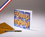 Carte double en lettres d'or créée et imprimée en france - anniversaire happy birthday ballons