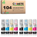 COMETE, Entreprise Française- 104- pack 8 Recharges Ecotank Compatibles EPSON