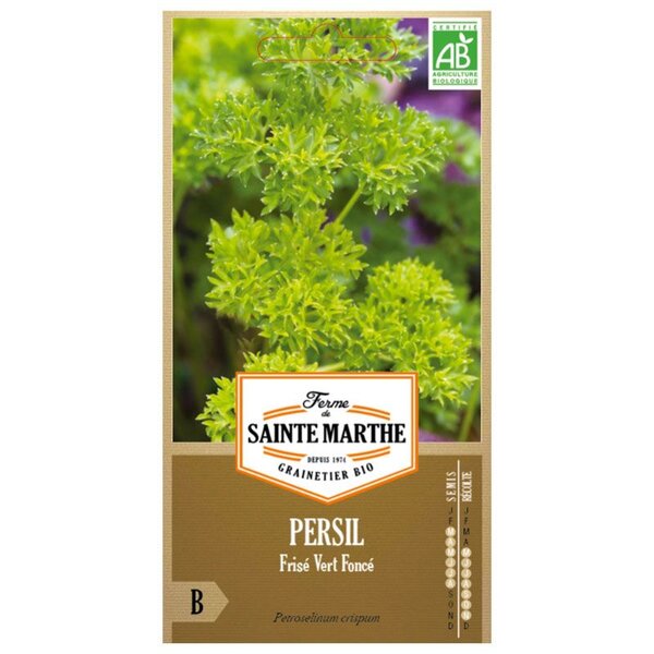 Le persil frisé vert foncé (Petroselinum crispum) produit des feuilles frisées et finement ciselées et donne un goût assez prononcéPour une cuisine nouvelle testez par exemple le pesto de persil et citron!Le semis se fait entre mars et août à exposition ombragée et la récolte / floraison entre mai et octobreContenance : 1,7 grammes pour 1000 grainesDécouvrez également le reste de notre gamme d'arômates (coriandre, ciboulette, thym...)