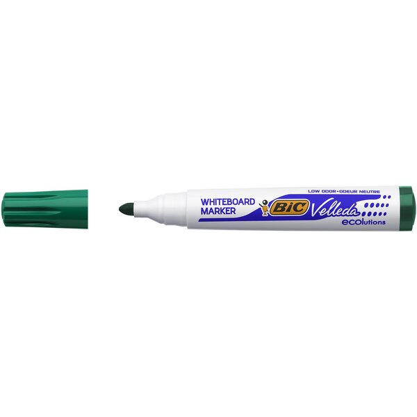 12 x BIC Feutre tableau blanc effaçable à sec 1701 ECOLUTIONS Pte Ogive Large VertCorps plastique coniqueEncre à base d'alcoolFaible odeurFabriqué à partir de 51% de matière recyclée*Pointe ogive large : 0,5mmProduit ECOlutions, PHOTOS NON CONTRACTUELLES