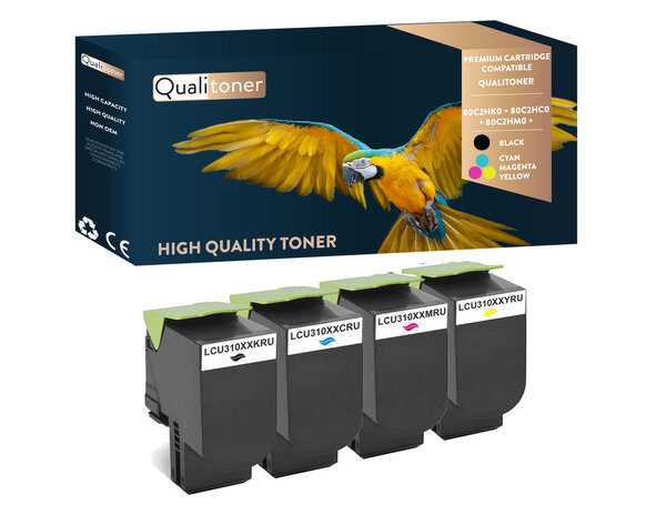 LE LOT CONTIENT - 4 toners : 80C2HK0 + 80C2HC0 + 80C2HM0 + 80C2HY0 Nombre d'impressions : 10000LISTE DES COMPATIBILITÉS : Cartouche de Toner Laser (ou tambour) compatible avec Lexmark CX410 CX410de CX410dte CX410e CX510 CX510de CX510dhe CX510dtheQUI SOMMES NOUS : QUALITONER est le spécialiste des consommables compatibles en France. Associée à un groupe possédant 30 ans d'expertise dans le domaine du consommable compatible, QUALITONER vous propose les meilleurs produits pour votre imprimante (Jet d'encre, Laser, Tambour...).
