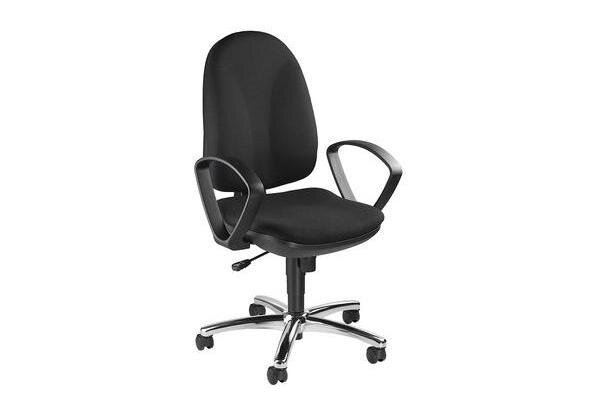 Topstar siège de bureau 'Synhro steel', tissu, noir, Ajustement de disque intervertébral, mécanisme, point-synchrone, accoudoirs inclus, piétement croisé en, acier chromé, poids max.: 110 kg, (8929 G20)