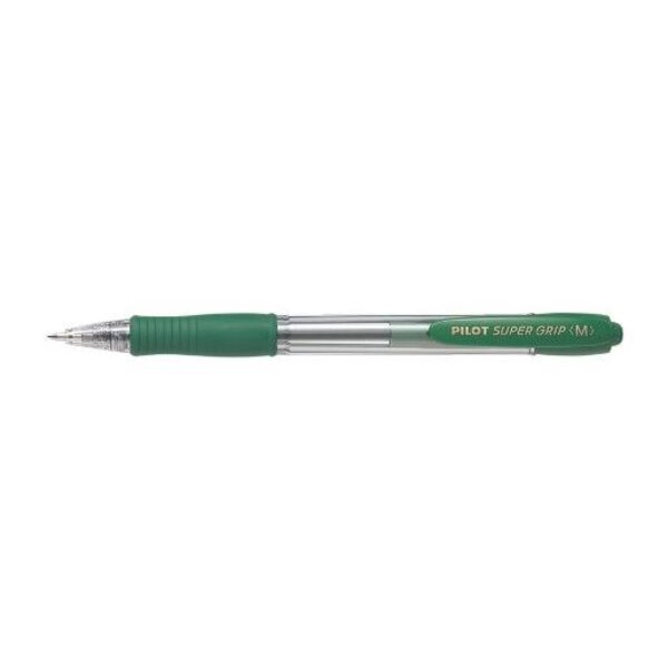 PILOT Stylo à bille rétractable Super Grip, encre de couleur, vert, grip caoutchoutée, largeur de tracé: M, grip et agrafe, en vert, couleur du corps: transparent, (160936 / BPGP-10R-M-G / 2030004)