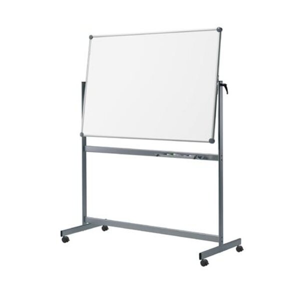 -Réversible sur 360°, inclination en continu, blocage sécurisé par molette latérale , -Le maximum en termes de stabilité, fonctionnalité et qualité , -Made in Germany , -Trois ans de garantie, 5 ans sur la surface (sous réserve d'utilisation adéquate) , -Très robuste : le bâti est particulièrement solide, surface résistante , -Facile à déplacer, muni de grandes roulettes jumelles, antifriction, orientables avec freins , -Pratique : double surface, tableau blanc sur les deux faces , -Polyvalent : pour aimants et marqueurs, très bon effaçage à sec , -Utilisable à peu de frais comme chevalet de conférence ou comme surface de projection grâce aux cavaliers porte-bloc (réf. 638 73 84) et l'écran de projection (réf. 640 65 02) disponibles en option , -Surface en très épaisse tôle d'acier de 0,45mm sur cœur rigide en technique sandwich , -Robuste surface laquée, adaptée à une utilisation permanente , -Auget métallique, solide fixation par deux barres d'acier , -Très grande stabilité : robuste cadre en aluminium anodisé argent, env. 1,3mm d'épaisseur , -Solide bâti : en tubulure ovale thermolaquée gris argent , -Recyclable à 98%, production écologique dans nos usines locales , -Conditionnement sûr et respectueux de l'environnement : solide carton d'expédition recyclable , -Le code couleur se réfère à la couleur des coins , Dimensions = 100 x 150 cm, Dimensions H.T. cm = 195 x 165 x 65 cm