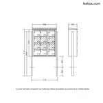 Bloc collectif Leabox 3x4 grade 3 simple face extérieur sur pieds à sceller noir 9005 finition brillante