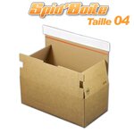 Boîte carton Spid'Boîte 3 en 1 :- fond automatique- couvercle charnière avec bande autocollante- languette d'ouverture sécuriséeFormat intérieur = 31 x 23 x 16 cm- Qualité simple cannelure 20kg.- Bonne finition avec extérieur écru (marron)- Bonne résistance.- Idéal pour vos expéditions en colis postal.- Très pratique pour vos envois par La Poste et petits colis.- 100% recyclable.- Livré à plat = gain de place pour le stockage.Le meilleur rapport qualité/prix en terme de protection et de résistance !