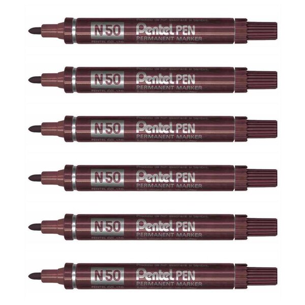 Marqueur permanent N50 pointe ogive 2 mm Marron x 6 PENTEL
