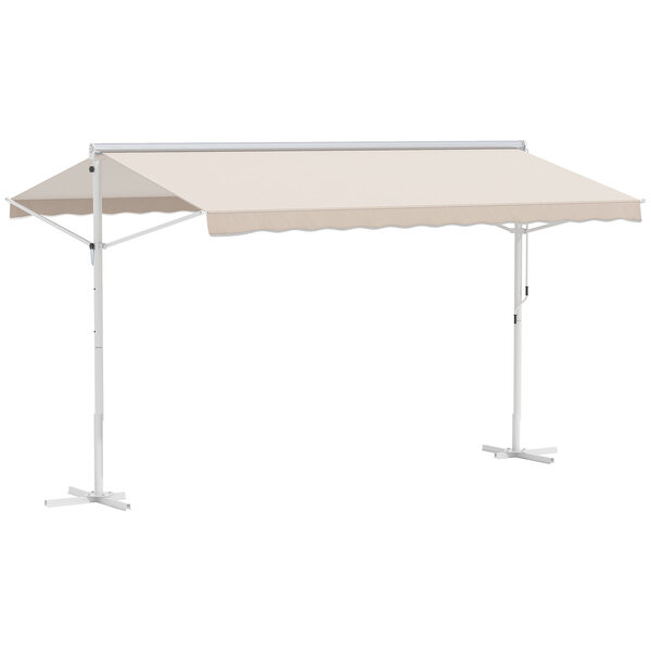 Store double pente manuel rétractable inclinaison réglable métal époxy blanc polyester imperméabilisé anti-UV beige dim. 3 95L x 2 98l x 2 55H m
