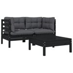 vidaXL Salon de jardin 3 Pièces avec coussins Noir Bois de pin massif